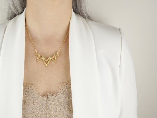 Colar Geométrico, Filigrana Portuguesa, Prata de Lei 925 Dourada