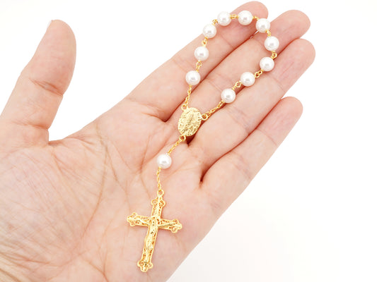 Dezena Mini Terço com Pérolas, Filigrana Portuguesa, Prata de Lei 925 Dourada
