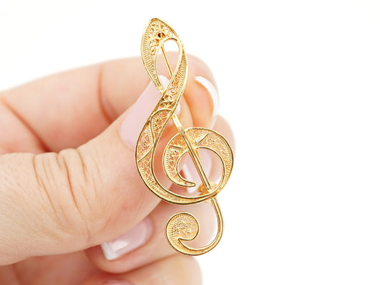 Alfinete Clave de Sol, Filigrana Portuguesa, Prata de Lei 925 Dourada