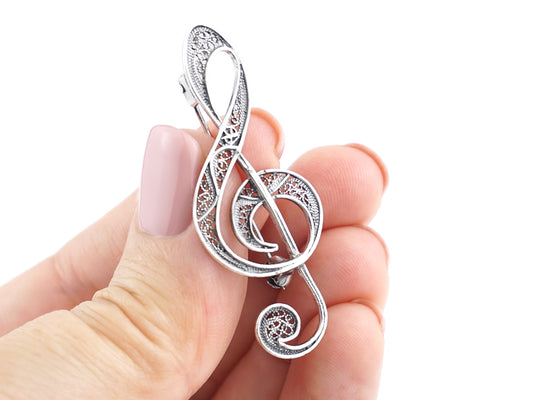Alfinete Clave de Sol, Filigrana Portuguesa, Prata de Lei 925