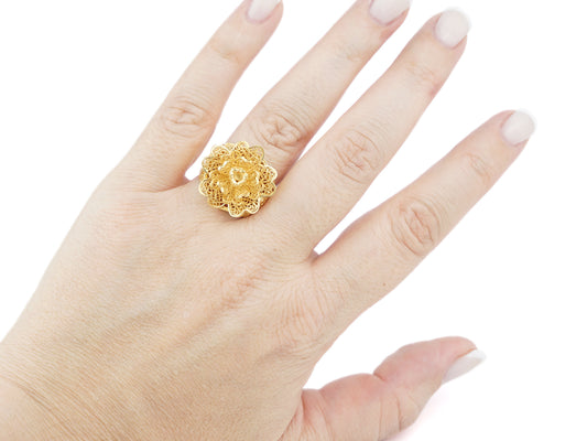 Anel Flor Rica, ajustável, Filigrana Portuguesa, Prata de Lei 925 Dourada
