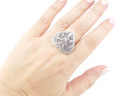 Anel Coração de Viana Grande, ajustável, Filigrana Portuguesa, Prata de Lei 925