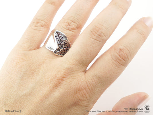 Anel Coração Escamas ajustável, Filigrana Portuguesa, Prata de Lei 925