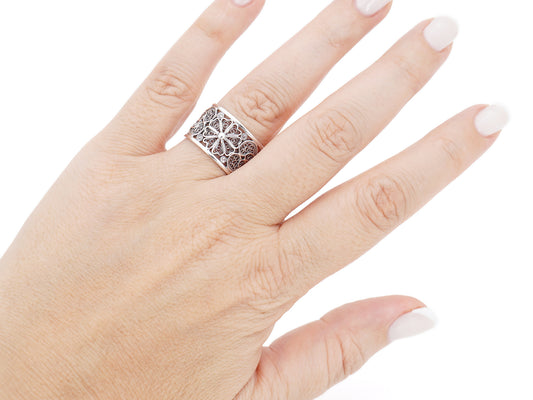 Aliança Larga Ajustável, Filigrana Portuguesa, Prata de Lei 925