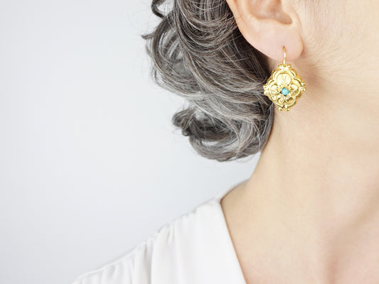 Brincos Barrocos com turquesas sintéticas, Prata de Lei 925 Dourada