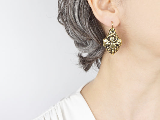 Brincos Barrocos Uvas, Prata de Lei 925 Dourada