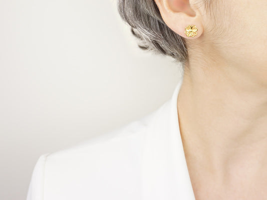 Brincos Trevos Mini, Filigrana Portuguesa, Prata de Lei 925 Dourada