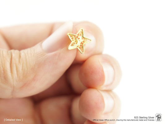 Brincos Estrela Pequena, Filigrana Portuguesa, Prata de Lei 925 Dourada