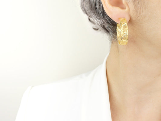 Brincos Meias Argolas Ondas, Médias, Filigrana Portuguesa, Prata de Lei 925 Dourada