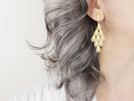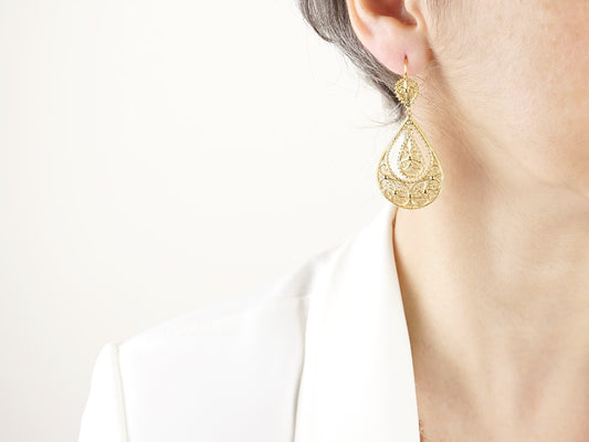 Brincos Lágrima Grandes, Filigrana Portuguesa, Prata de Lei 925 Dourada