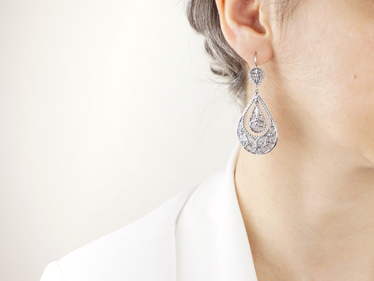 Brincos Lágrima Grandes, Filigrana Portuguesa, Prata de Lei 925