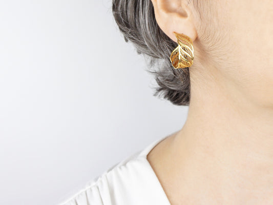 Brincos Arrecadas Folhinhas, Filigrana Portuguesa, Prata de Lei 925 Dourada