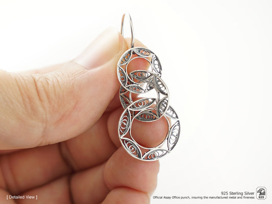 Brincos Circulos Triplos, Filigrana Portuguesa, Prata de Lei 925