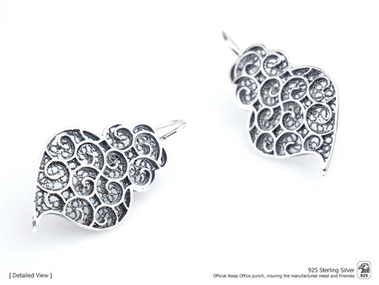 Brincos Coração Espirais, Filigrana Portuguesa, Prata de Lei 925