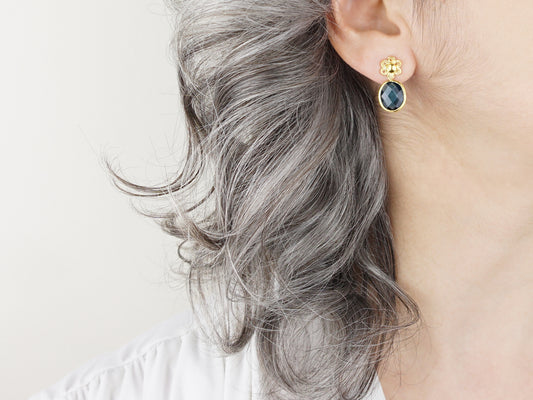 Brincos Flor e Pedra Azul, Filigrana Portuguesa, Prata de Lei 925