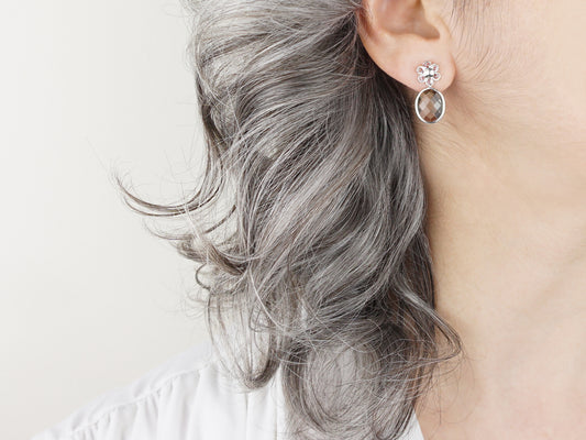 Brincos Flor e Pedra Castanha, Filigrana Portuguesa, Prata de Lei 925