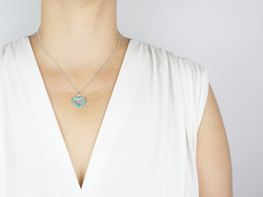 Colar Coração Médio Esmalte Turquesa, Filigrana Portuguesa, Prata de Lei 925