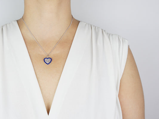 Colar Coração Médio Esmalte Azul, Filigrana Portuguesa, Prata de Lei 925
