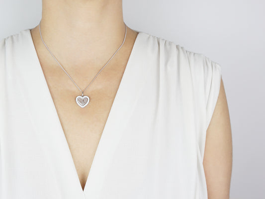 Colar Coração Médio Esmalte Branco, Filigrana Portuguesa, Prata de Lei 925