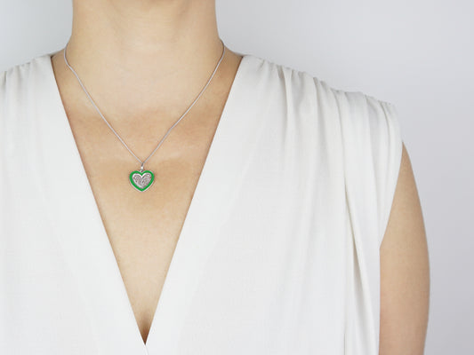 Colar Coração Médio Esmalte Verde, Filigrana Portuguesa, Prata de Lei 925