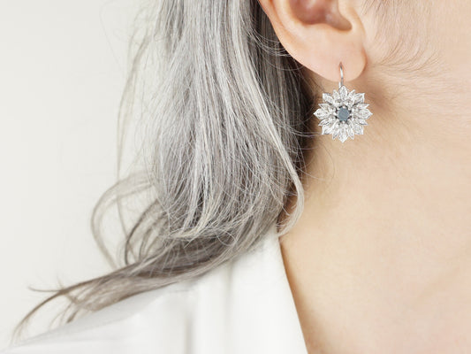 Conjunto Brincos e Colar Flor Rica com Pedras, Filigrana Portuguesa, Prata de Lei 925