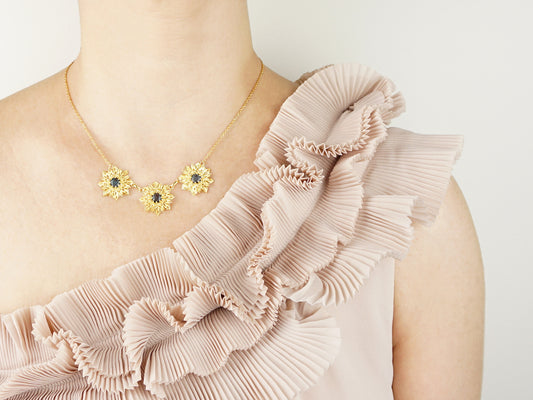 Conjunto Brincos e Colar Flores, Filigrana Portuguesa, Prata de Lei 925 Dourada
