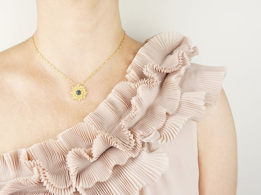 Colar Flor Rica com Pedra, Filigrana Portuguesa, Prata de Lei 925 Dourada