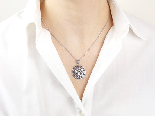 Colar Medalha Redonda com Corações, Filigrana Portuguesa, Prata de Lei 925