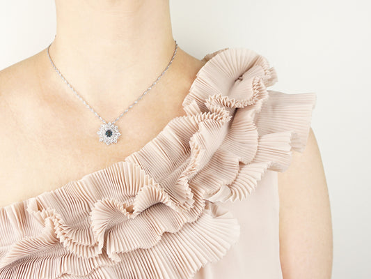 Colar Flor Rica com Pedra, Filigrana Portuguesa, Prata de Lei 925
