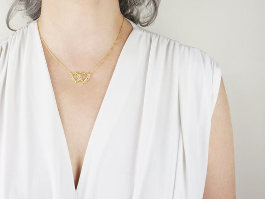 Colar Dois Corações Entrelaçados, Filigrana Portuguesa, Prata de Lei 925 Dourada