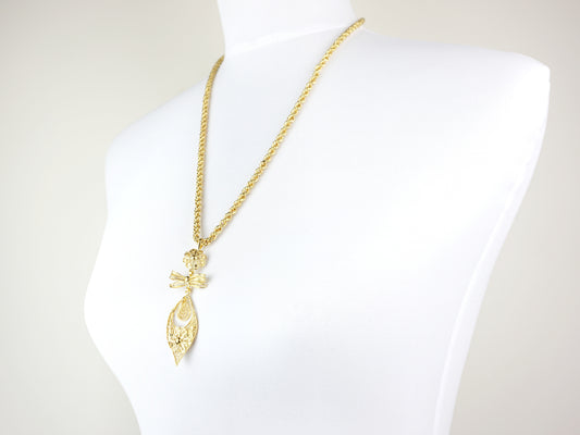 Colar com Relicário / Custódia Grande, Filigrana Portuguesa, Prata de Lei 925 Dourada
