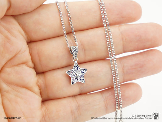 Colar Medalha Estrela Pequena, Filigrana Portuguesa, Prata de Lei 925