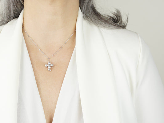 Colar com Cruz Extra Pequena de Contas de Viana 4mm, Filigrana Portuguesa, Prata de Lei 925