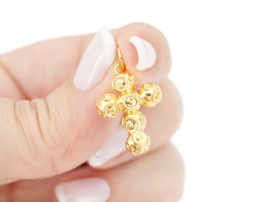 Medalha Cruz Pequena de Contas de Viana, Filigrana Portuguesa, Prata de Lei 925 Dourada