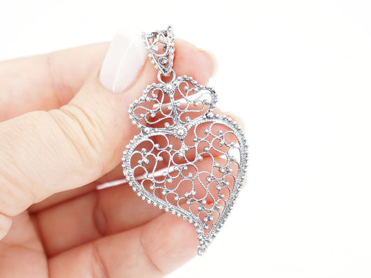 Medalha Coração de Viana Rendado Médio, Filigrana Portuguesa, Prata de Lei 925