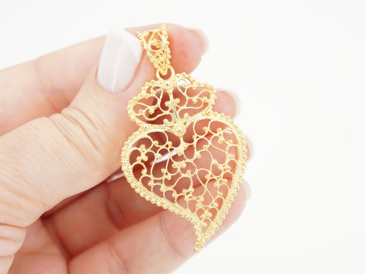 Medalha Coração Fidalga, Filigrana Portuguesa, Prata de Lei 925 Dourada