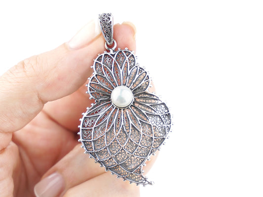 Medalha Coração com Pérola, Filigrana Portuguesa, Prata de Lei 925