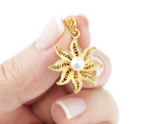 Medalha Flor Elaborada, Filigrana Portuguesa, Prata de Lei 925 Dourada
