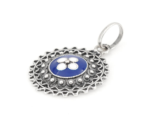 Medalha Flor Clássica com Esmalte, Filigrana Portuguesa, Prata de Lei 925