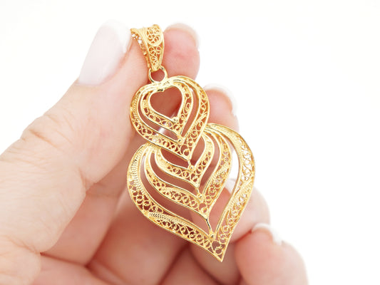 Medalha Coração Fidalga, Filigrana Portuguesa, Prata de Lei 925 Dourada