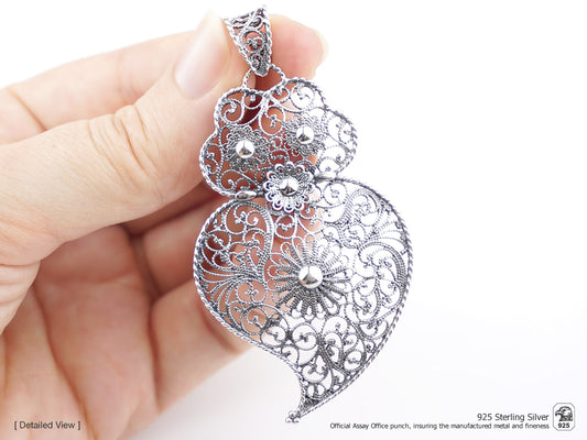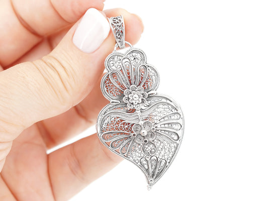 Medalha Coração Renda Grande, Filigrana Portuguesa, Prata de Lei 925