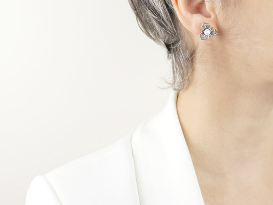 Brincos Flor Larga com Pérola, Filigrana Portuguesa, Prata de Lei 925