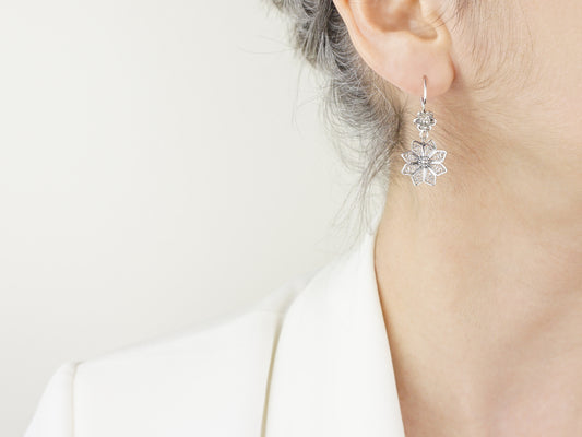 Brincos Flores Compridos, Filigrana Portuguesa, Prata de Lei 925
