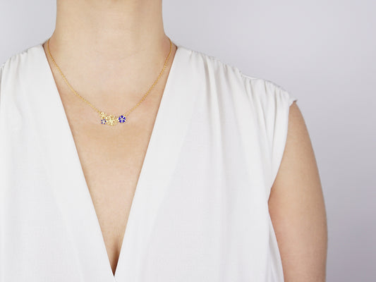 Colar Quatro Flores, com Esmalte, Filigrana Portuguesa, Prata de Lei 925 Dourada