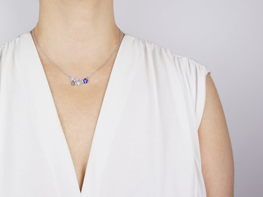 Colar Quatro Flores, com Esmalte, Filigrana Portuguesa, Prata de Lei 925