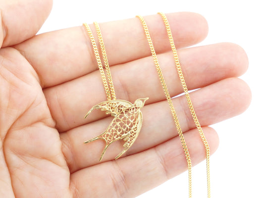 Colar Andorinha, Filigrana Portuguesa, Prata de Lei 925 Dourada