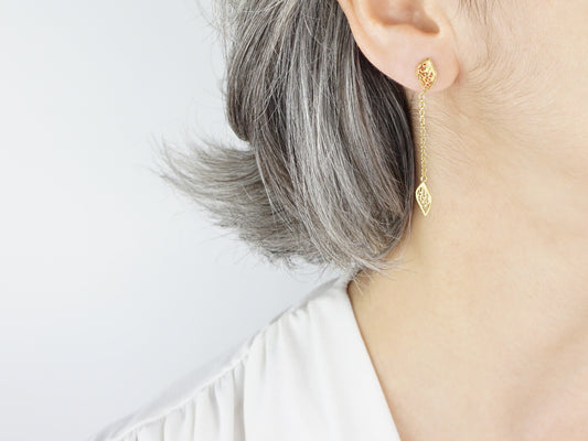 Brincos Folhinhas 2 em 1, Filigrana Portuguesa, Prata de Lei 925 Dourada