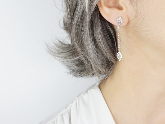 Brincos Folhinhas 2 em 1, Filigrana Portuguesa, Prata de Lei 925