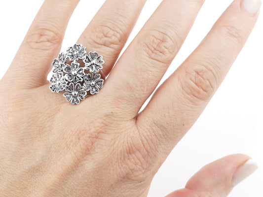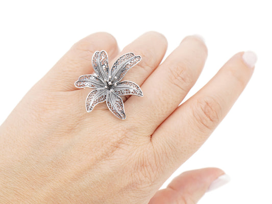 Anel Flor Grande Ajustável, Filigrana Portuguesa, Prata de Lei 925