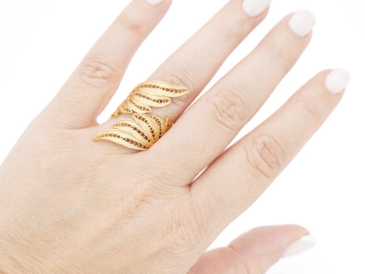 Anel Asas Ajustável, Filigrana Portuguesa, Prata de Lei 925 Dourada